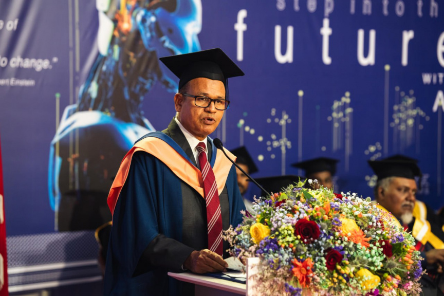 Local Government Minister Adam Shareef Umar addresses Cyryx College’s 2025 Convocation on October 17, 2025. (Photo/Cyryx College)
