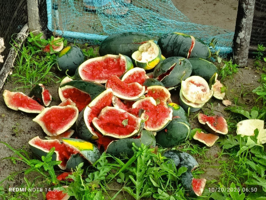 HDh. Kumundhoo watermelon farms badly vandalized on October 20, 2025. (Photo/Kumundhoo Council member Ali Gasim)