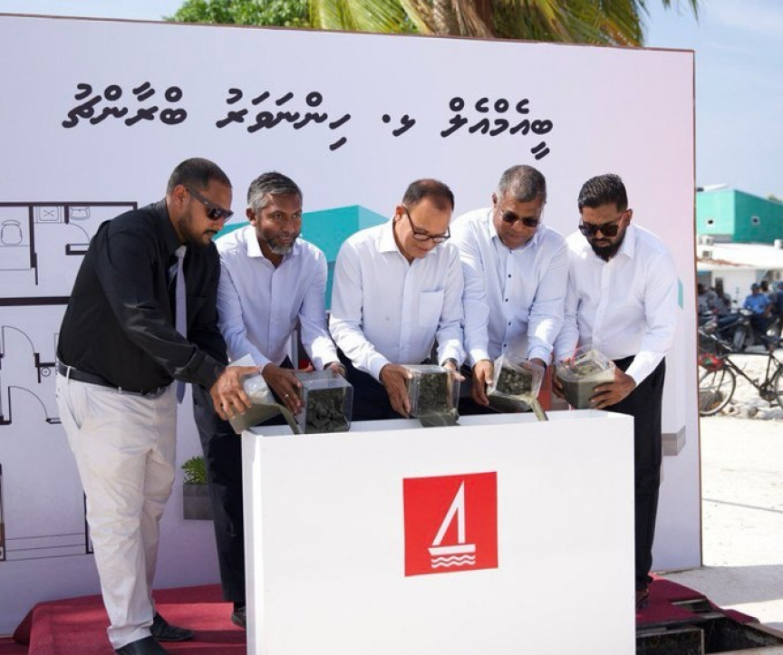 From the foundation stone laying ceremony at Lh. Hinnavaru to open a second BML branch in the atoll on October 27, 2025. (Photo/BML)