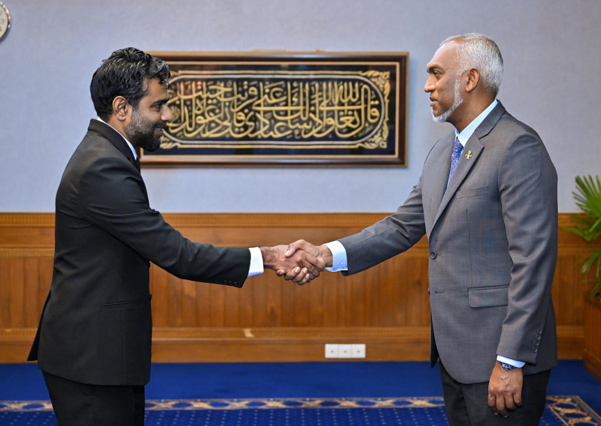 President Dr. Mohamed Muizzu (R) appoints Husnee Mubarik (L) to the Judicial Service Commission on October 29, 2025. (Photo/President's Office)