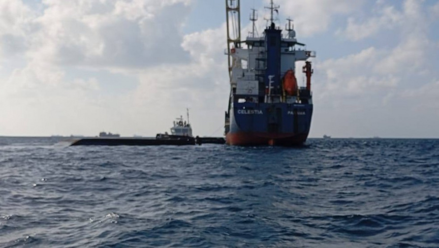 A landing craft capsizes at the Male' Commercial Port on November 2, 2025. (Photo/Marine Police)