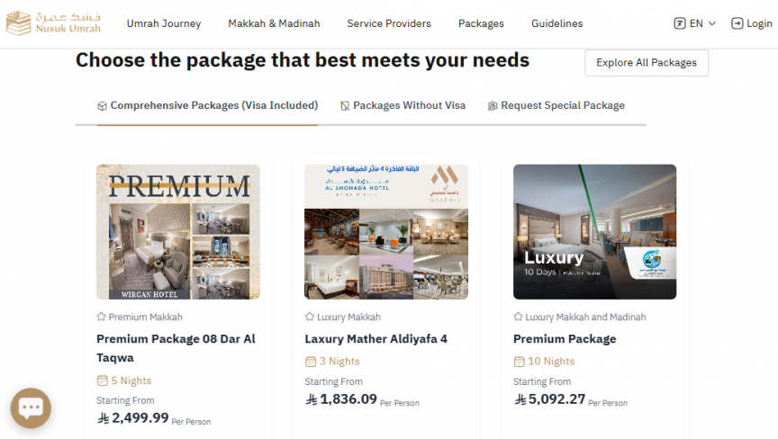 The Ministry of Hajj and Umrah’s “Nusuk Umrah” platform offers affordable, customizable packages for individuals or small groups. The service is designed to simplify the process and enhance the experience for pilgrims traveling independently.