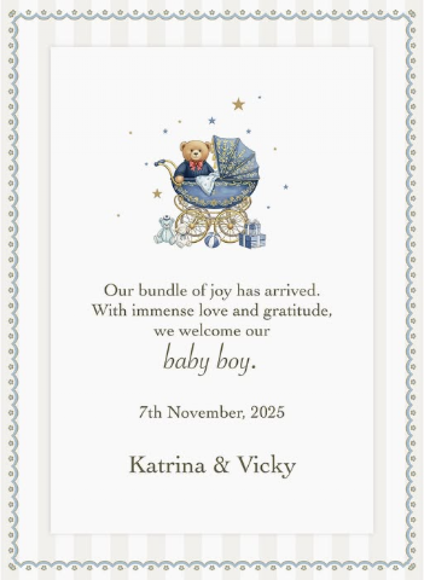 “Our bundle of joy has arrived. With immense love and gratitude, we welcome our baby boy.”