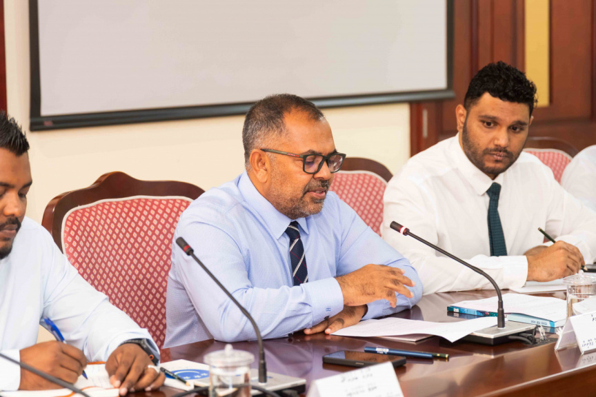 Finance Minister Moosa Zameer speaks at the parliamentary budget review committee on November 10, 2025. (Photo/Majlis)