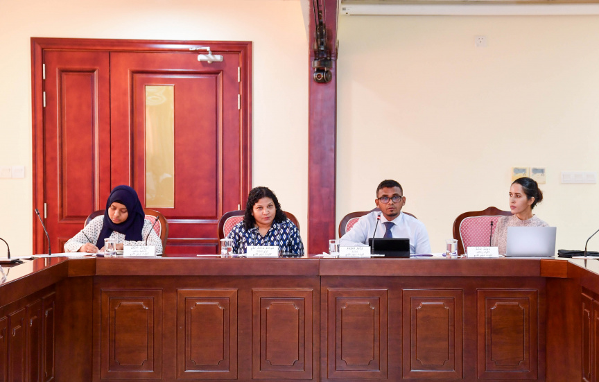 MMA Governor attends the Parliament's Budget Committee on November 15, 2025, with his aides. (Photo/People's Majlis)