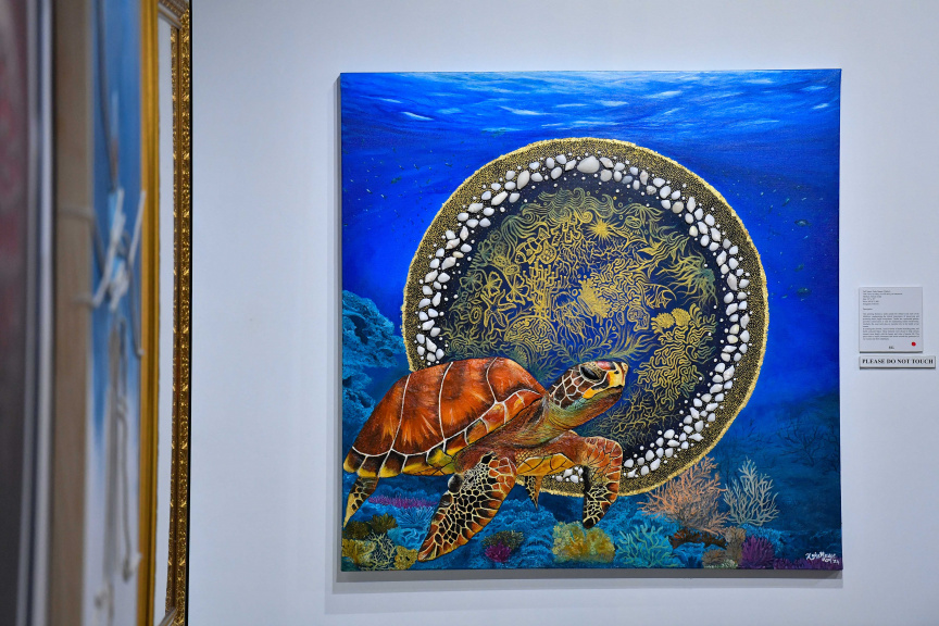 Despite its ocean-inspired name, the exhibition will include artworks tied to the Maldives’ history and cultural heritage. The mother-son duo has decided to put all art pieces up for sale. They include large artworks in demand by resorts.