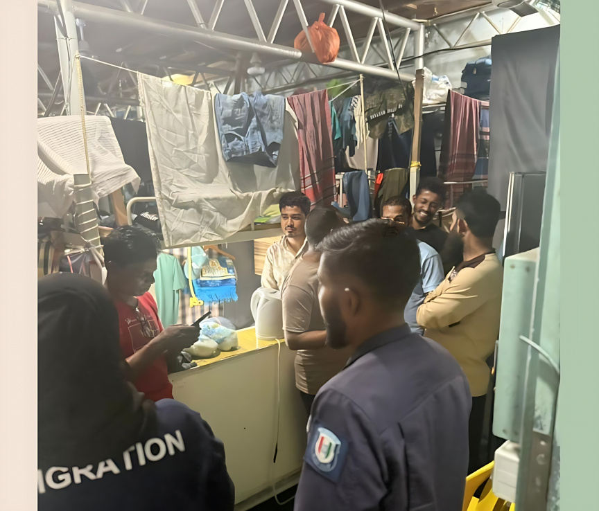 From the joint operation conducted by the Maldives Police Service, Immigration, Customs, and the Ministry of Economic Development to locate expatriates running businesses illegally in the Maldives, November 29, 2025. (Photo/Maldives Police Service)