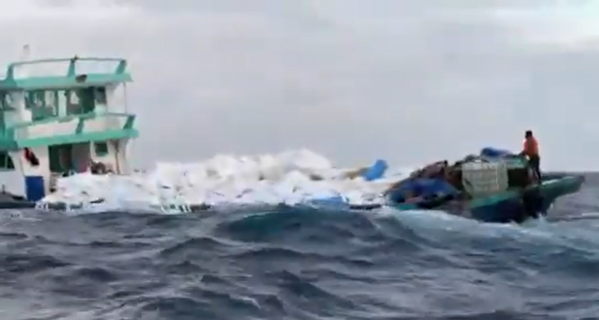 Screen capture shows the cargo vessel Fehila reported sinking off the channel between Villimale’ and Vaadhoo island, November 30, 2025. (Photo/Maldives Police Service)