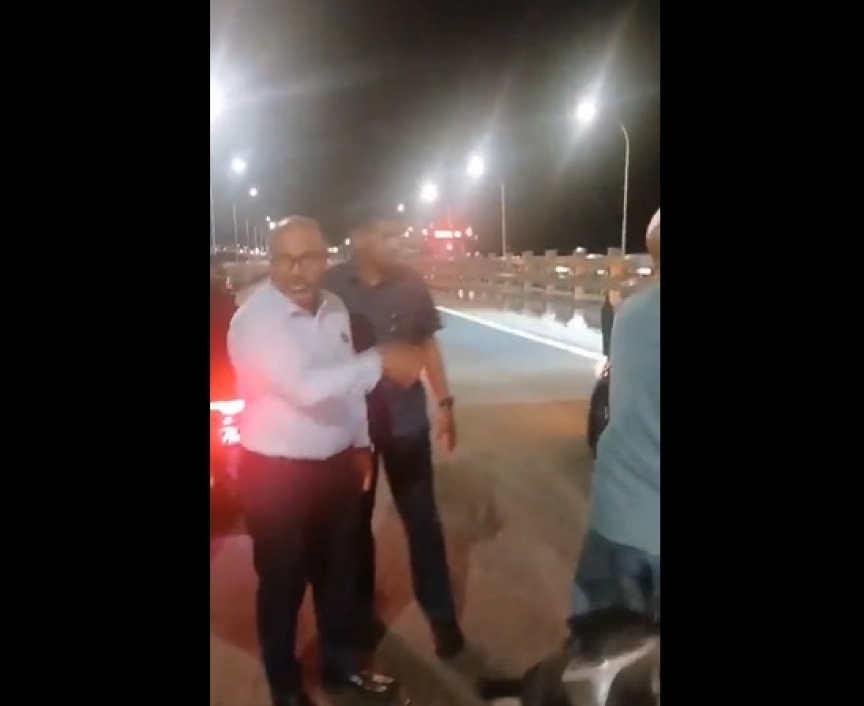 Screen capture of Homeland Minister Ali Ihusaan on scene at a Sinamale' Bridge accident, instructing people to get the injured into his minister's official car on December 1, 2025. (Photo/MV Crisis)