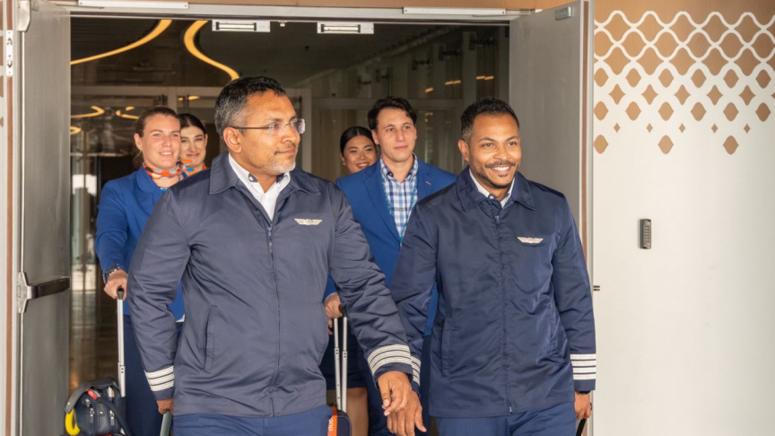 The FlyDubai flight FZ1569 from Dubai, United Arab Emirates (UAE) which touched down in Velana International Airport (VIA) on Thursday was operated by Maldivian pilots – Captain Jinaan Shareef and First Officer Mohammed Shinaz.