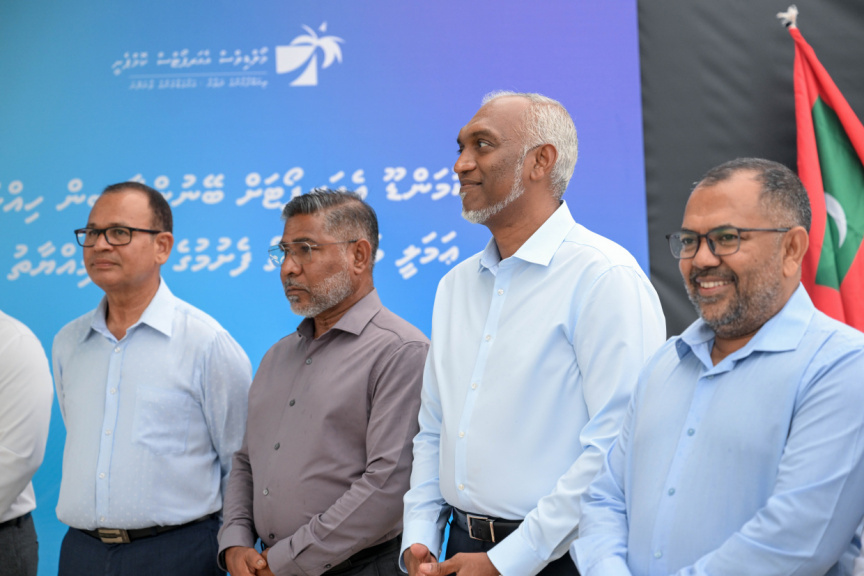 (From R-L) Finance Minister Moosa Zameer, President Dr. Mohamed Muizzu, and MACL's Managing Director Ibrahim Shareef Mohamed. (Photo/President's Office)