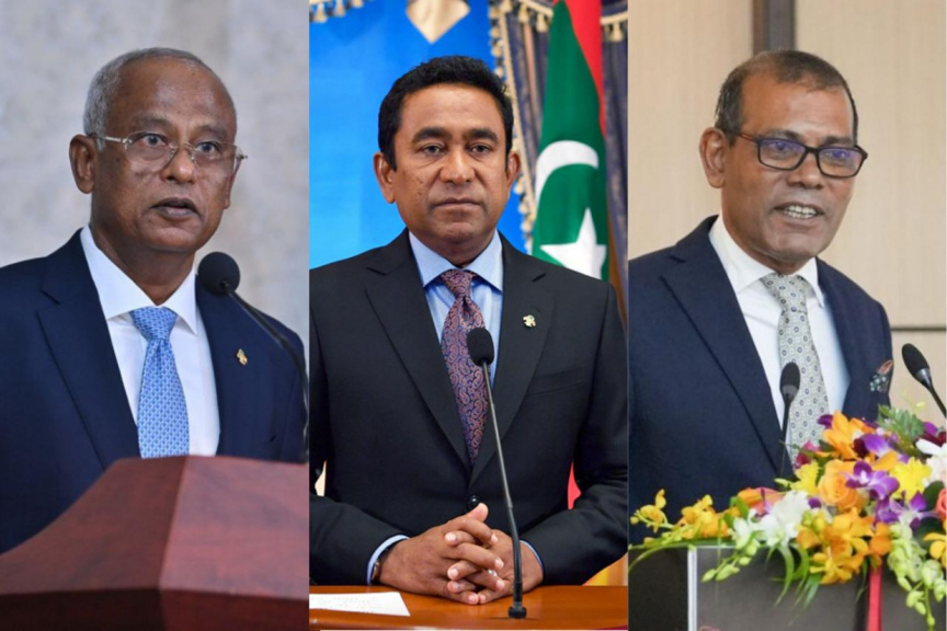 Combined file photos of (from L-R) Ibrahim Mohamed Solih, Abdulla Yameen Abdul Gayoom, and Mohamed Nasheed.