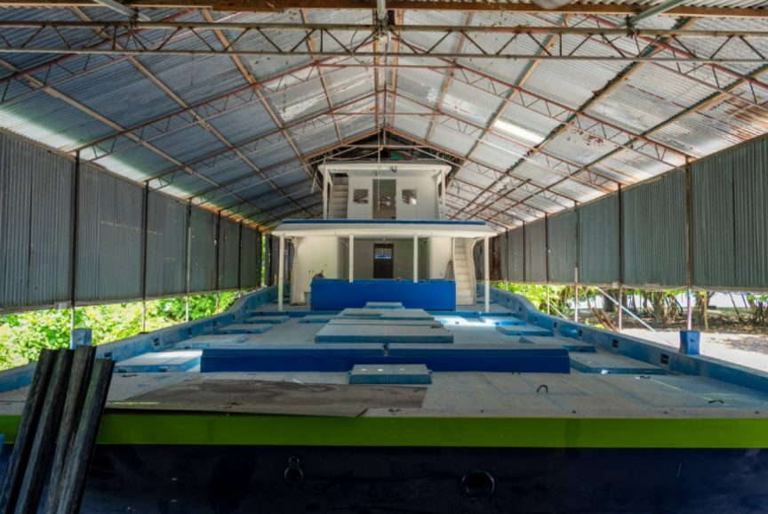 An area where fiberglass work is done: Fiber work in Hulhumale' lagoon has been ordered to be halted before Sunday by HDC. (Photo/Zuvaan Masveriyaa)