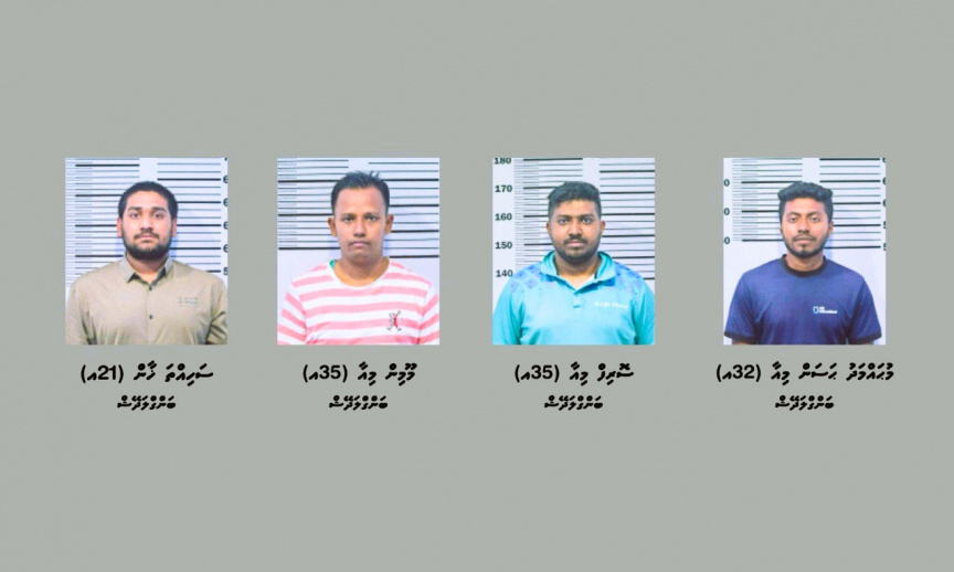 Combined photos of (from L-R) Sahitha Khan, 21; Moomin Mia, 35; Sorif Mia, 35; and Mohamed Hassan Mia, 32. (Photo/Maldives Police Service)