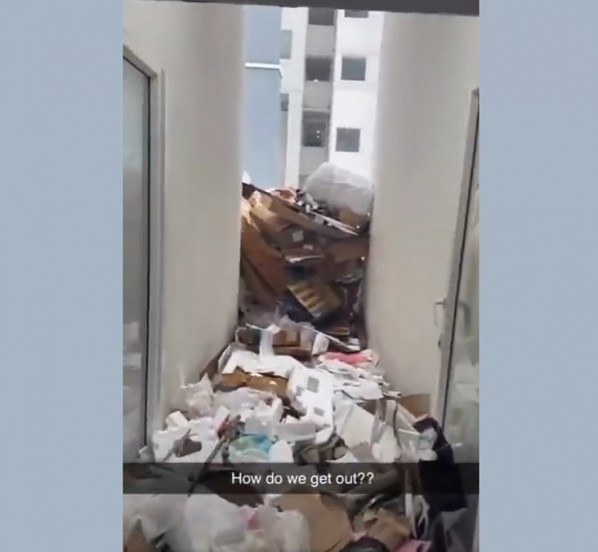 Residents have been raising concerns on social media over repeated waste dumping around the flats. Videos and photos circulating online show significant amounts of debris left in common areas, including a corridor leading to one of the tower entrances.