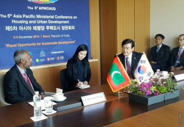 Minister of Housing and Infrastructure Dr Mohamed Muizzu, who is presently attending the Fifth Asia Pacific Ministerial Conference on Housing and Urban Development (APMCHUD) in Seoul, South Korea, told Sun Online that the South Korean Minister of Land, Infrastructure and Transport Suh Seoung-hwan had assured that the South Korean government would provide technical assistance to housing and infrastructure projects in the Maldives.