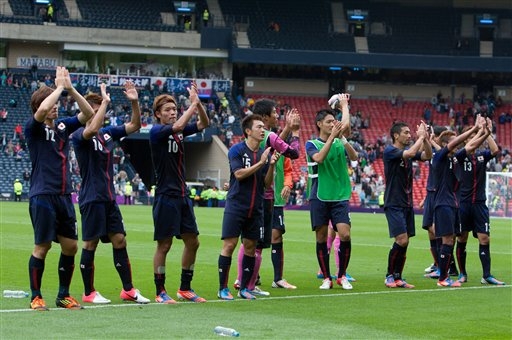 CARDIFF, Wales (AP) — Japan upset Spain 1-0 on the first day of the men's Olympic football tournament on Thursday, while Brazil held on for a 3-2 victory over Egypt and host Britain had to settle for a 1-1 draw with Senegal.