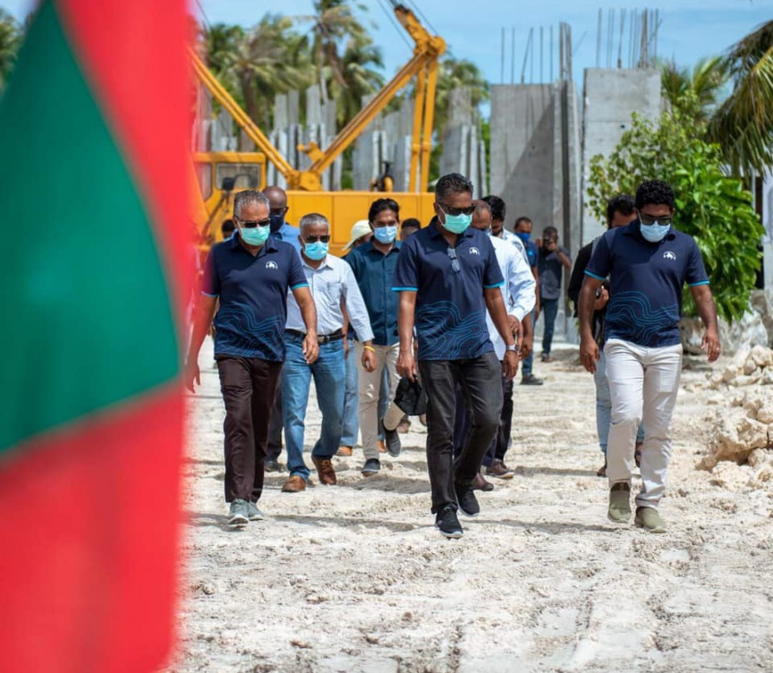 MTCC CEO Adam Azim and Minister of State for Housing Akram Kamaludheen inspects the progress of Hdh. Nellaidhoo Habor Project, October 24, 2020. (Photo/MTCC)