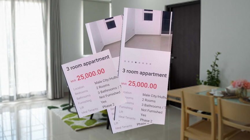 Some ads list three-bedroom units for MVR 25,000, while FDC’s official rent is MVR 10,500 for the same units.
