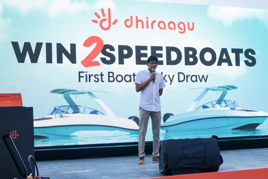 Abdullah Saeed has been announced as the winner of the first speedboat in Dhiraagu’s ‘Win Two Speedboats’ promotion. Saeed received an Al Shaali Marine Canary 28 sports speedboat, powered by a 250-horsepower Yamaha engine. Roboman brought the energy and had the crowd buzzing!????Thank you all for an amazing time at our WIN 2 Speedboats - First Lucky Draw event????#Dhiraagu #Win2Speedboats pic.twitter.com/ufcReCPOHw — Dhiraagu