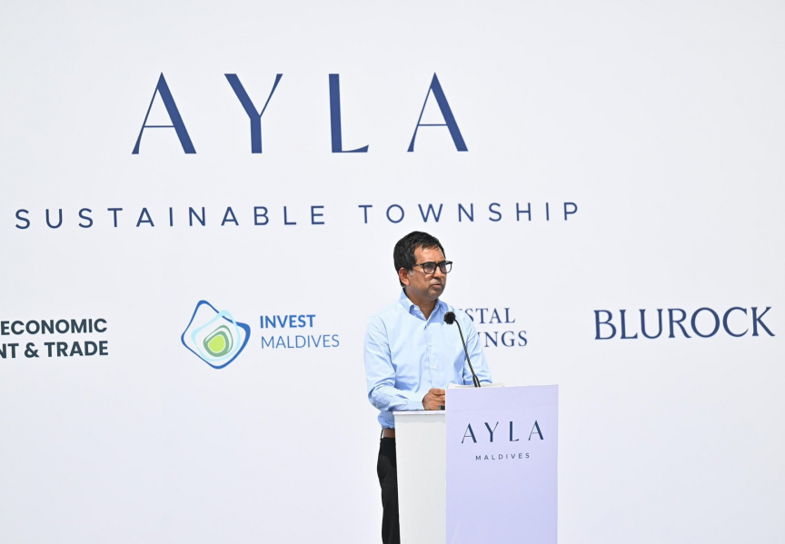 Economic Minister Mohamed Saeed hailed a “new chapter” for the Maldivian economy on Thursday, as construction commenced on Project Ayla - the country’s' first sustainable township development. The ceremony to break ground on the milestone USD 790 million venture, that spans Dhigufaru, Dhekenanfaru, and Kuramaadhoo lagoons in Noonu Atoll, was attended by President Dr. Mohamed Muizzu, representatives from Crystal Holdings and