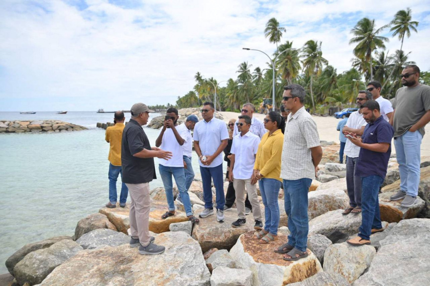 Former vice president Faisal Naseem has inspected the progress of projects initiated by the last MDP administration in Fuvahmulah City during a visit to the city as part of MDP’s campaign visit to islands for the upcoming local council elections. Faisal arrived at his home island, Fuvahmulah, on Saturday to campaign for the main opposition party, MDP, for the local council